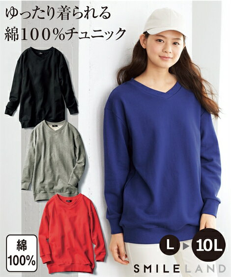 大きいサイズ レディース 綿100%裏毛ドロップショルダーチュニック 秋 チュニック カットソー トップ OFF STYLE L〜10L ニッセン